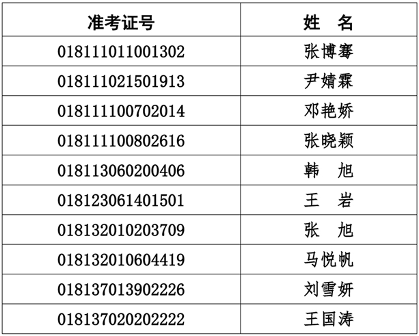 (注:递补人员名单按准考证号依次排序)